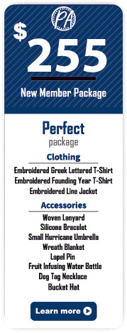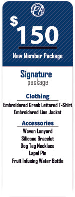 New member packages for members of Phi Beta Sigma Fraternity, Incorporated. There are three package levels to select from the Essential, Signature, and Perfect packages. We combined the most popular items that new members purchase and created a cost-saving package.
